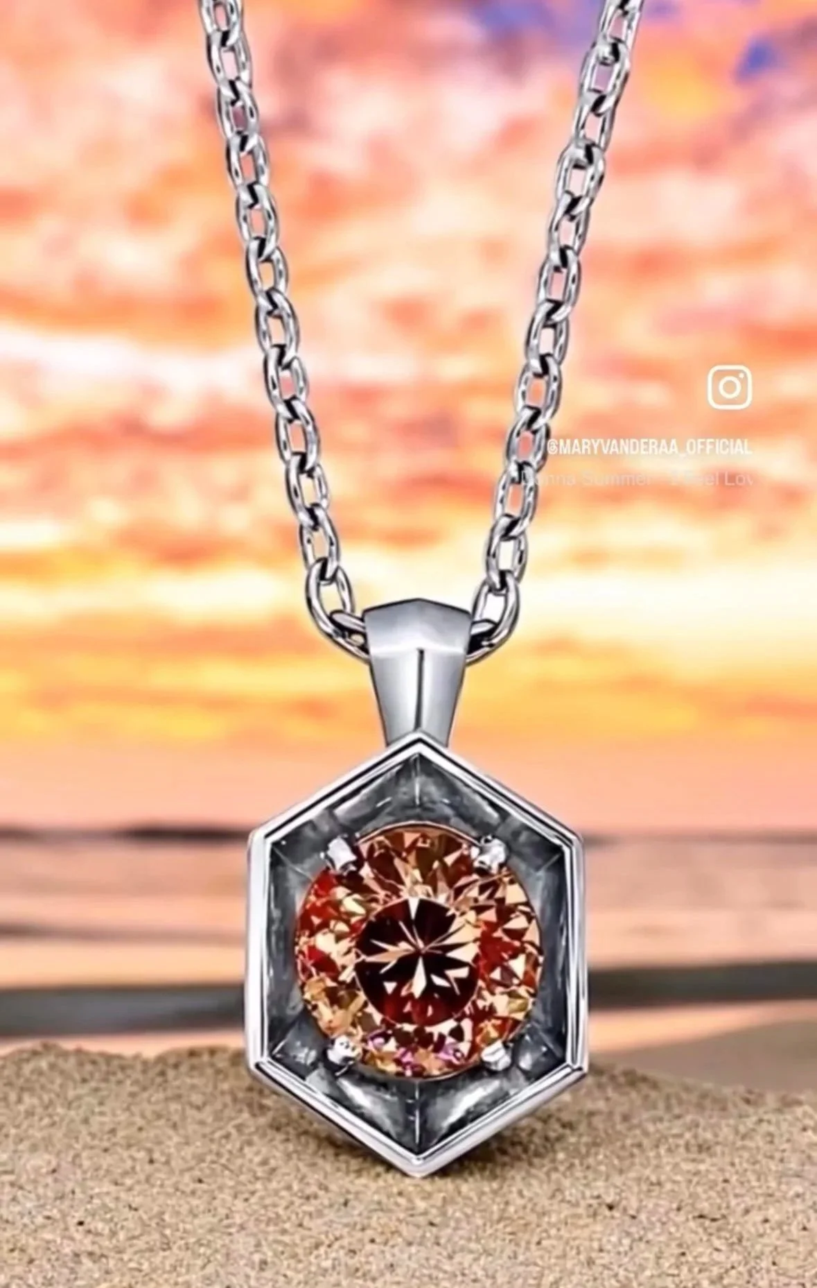Award-winning designer Mary van der Aa in collaboration with Tucson Todd’s Gems has received Platinum Honors in the Men's Jewelry category for their “Solaris Sunset” Necklace at the 2025 AGTA Spectrum Awards®. The striking piece features a 15.08ct peach garnet from Mahenge, Tanzania expertly faceted by Todd Wacks of Tucson Todd's Gems — set in platinum to capture the warmth and brilliance of a cosmic sunset.